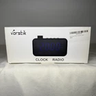 Untested never taken out of packaging Wake up every morning with the Vorstik Clock Radio, an alarm clock designed to help you start your day off right. This modern clock radio comes with adjustable LED lights and an FM radio, allowing you to set the mood for any room in your home. With its digital display and 7-day alarm, you can wake up to your favorite radio station or buzzer sound every day of the week. The Vorstik Clock Radio is perfect for any room in your home, from your bedroom to your home office or study.