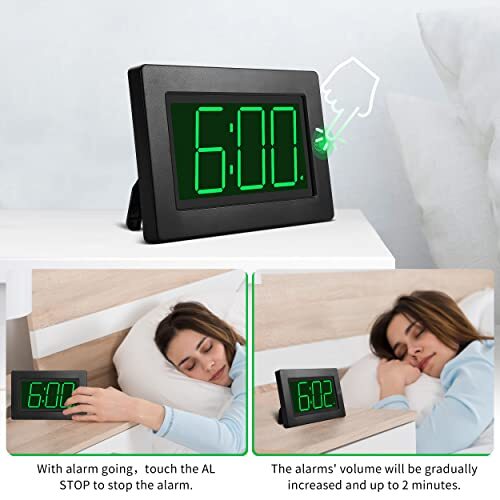 8" Large Screen with 3" LED Digit Display - The 8" Extra Large Screen Display with clear LED digital. LED numbers are 3" big high and they are showing hour and minute. As large wall clock, even the elderly and the dementia patients can easily recognize the time. 2 PCS Alkaline D Cell Batteries will support the alarm clock going to work for more than 12 months. Digital Desk Clock & Wall Clock - The digital clock with unfold the brackets on the back and you can put it on desk/ table/ bedside/ shelf/ nightstand as a desk clock. Hang on the wall by the hang holes easily wall-mounting for wall clock. A modern decoration digital wall clock for bedroom, kitchen, living room or office. Adjustable Brightness & Auto Night Mode - The digital alarm clock provides 3-level brightness, adjust by manual or auto to a comfortable brightness. The LED light will automatically dim during 8pm~6am your sleep time to protect your eyes at night and save energy. No blinding lights or any annoying sounds disturb your sleep, create an peaceful environment for sleep. (NOTE: Can't be used in strong light, otherwise the digital display will be blurred and even unable to read) High Accuracy & Daily Alarm - We understand that you are always need a clock with accurate time display and works well even after several years. Accuracy of the clock is less than ±30 seconds per month. The alarms' volume will be gradually increased and up to 2 minute. You will not miss your important affairs. Best Gift Idea & 12-Month Warranty - The Alarm Clock with 12 Months Replacement Warranty. Best gift idea for elderly, seniors, impaired vision, dementia, alzheimer's, memory loss, your kids, boys, girls, friends, family, parents and lovers.
