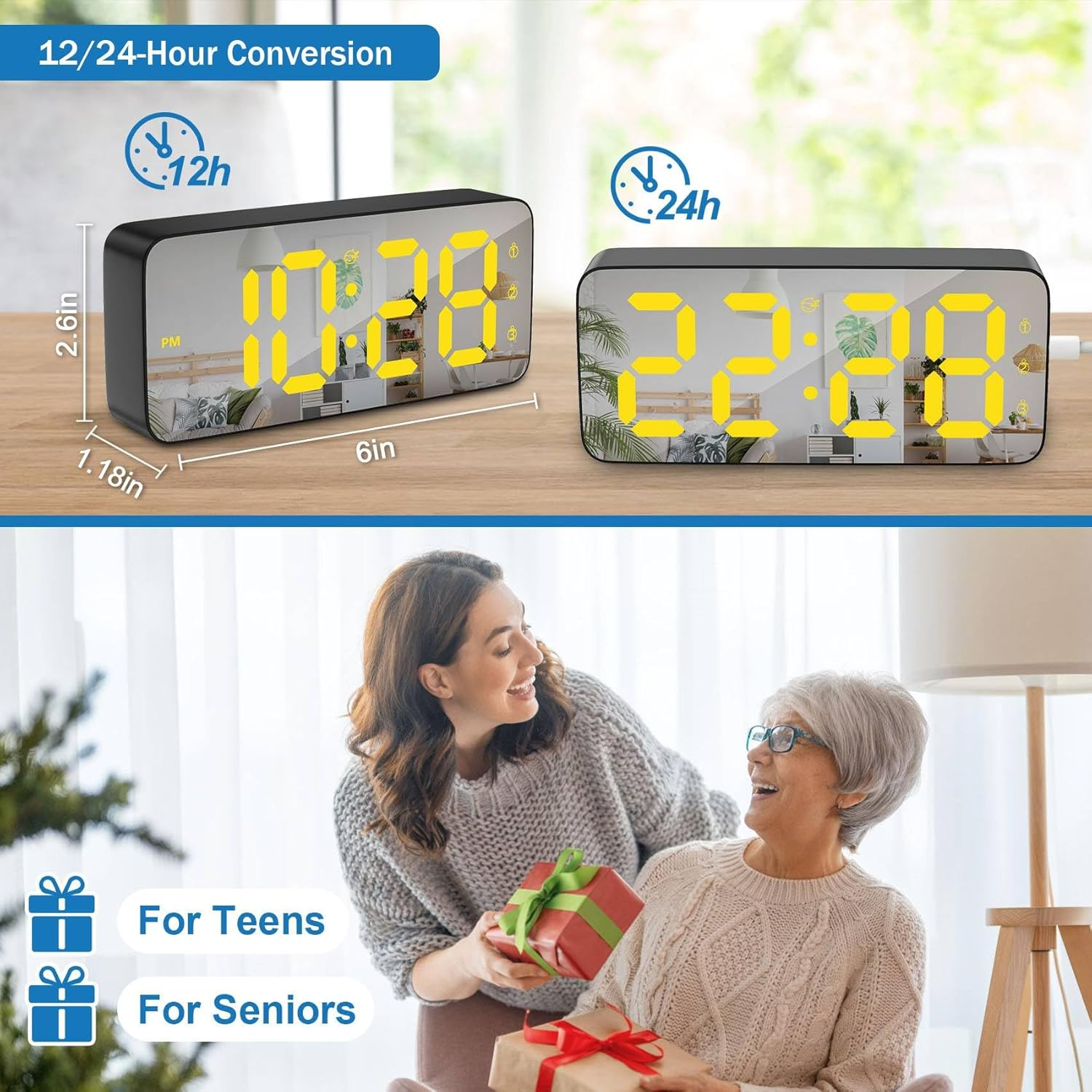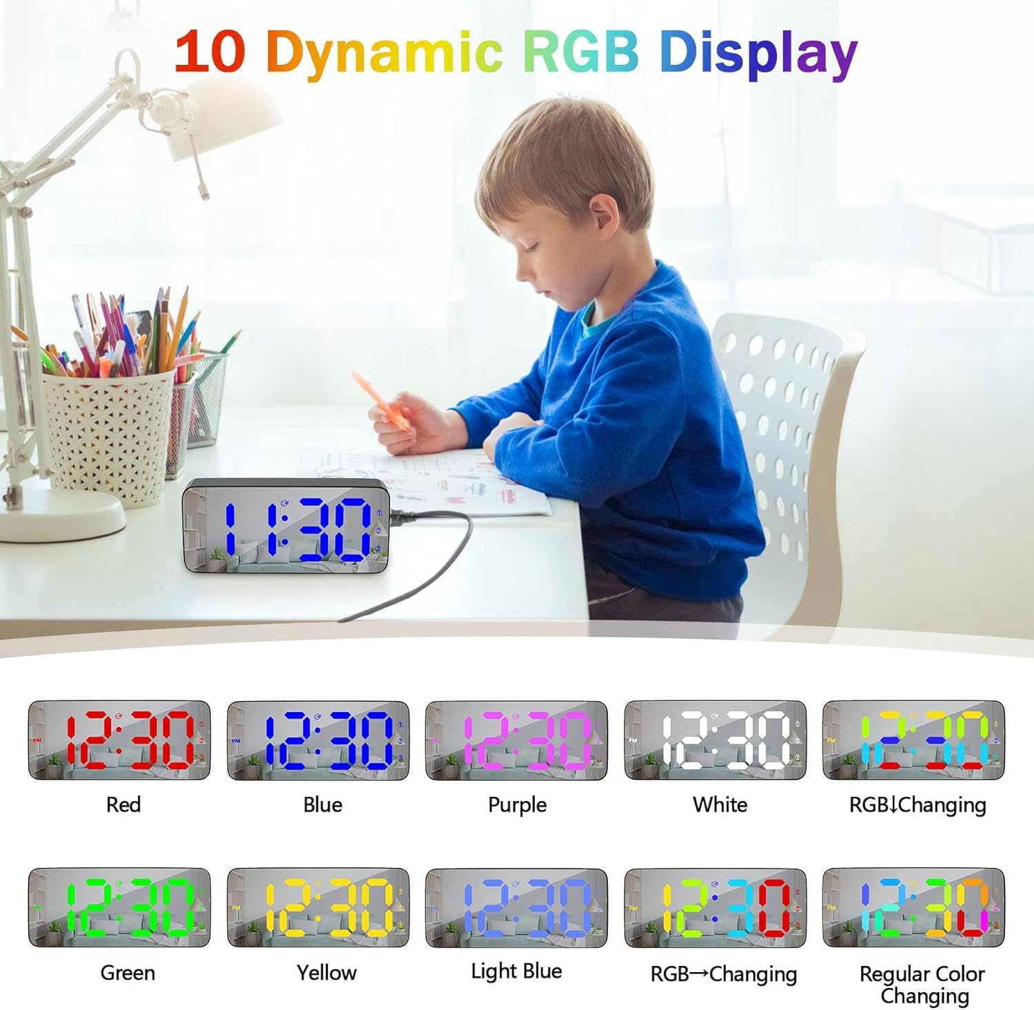 Store New Arrivals Add to Favorite View Feedback Contact Alarm Clock for Bedrooms, Large Display Three Alarm 12/24Hr and Dimmable Plug in Loud Digital Alarm Clock for Heavy Sleepers Adults Teens with Snooze, USB Charger (Black+Mirror) Description Item model number NZ-12-BKM Style Modern Number of Items 1 Power Source Corded Electric Theme Rainbow Are Batteries Included No Room Type Living Room, Bedroom, Home Office, Dining Room Product Dimensions 5.9"W x 2.6"H Material Plastic Shape Rectangular Frame Material Plastic Age Range (Description) Teens-Seniors Indoor/Outdoor Usage Indoor Item Weight 5.9 ounces Special Feature Corded Display Type Digital Mounting Type Tabletop Color Black+mirror Operation Mode Electrical Alarm Clock Yes RGB & Large Number: RGB digital colors can be easily switched to suit your mood or preferences. And alarm clock for bedrooms features a display screen of 5.9 (L) x 2.6 (W) inches, clear and large number 1.8 inches high display, making digital clock also easy for elderly people to read at a glance. To indicate that alarm clock is functioning properly, the dots between the numbers will continue to flash Adjustable Brightness Alarm Clock: There are 4 levels of brightness for your options (day time); The small digital clock will enter into night-mode and dim automatically at 10:00pm~6:00am to protect your eyes at night and create an peaceful environment for sleep; If you still feel it's too bright, you can long press "SNOOZE/LIGHT" key to turn off screen (the alarm still works normally) Powered and Time Memory: Alarm clocks for bedrooms are plug-in digital alarm clock that requires an external power source (excluding adapter) to be connected for power supply; 3 AAA backup batteries (not included) for storing time and alarm settings during power outage; Attention: USB charger only supports type-c charging Three Alarm and Snooze: Clock for bedroom have three alarm, you can easily set different alarm. In addition, desk clock have three alarm modes to choose from: Mon to Fri, Mon to Sat, or Mon to Sun. When the loud alarm clock for heavy sleepers adults rings, you can press the snooze button to get an additional snooze time Regular Features: Alarm clocks for teens display time, date (need to press the button to switch), includes snooze time(customizable from 1-60 minutes), 12/24hr, three alarms, 4 levels of adjustable brightness and RGB number display; If there are any areas where you do not know how to operate, please tell us at any time, and we will do our best to solve the problem for you Product Description Modern and Functional Digital Alarm Clock The video showcases the product in use. The video guides you through product setup. The video compares multiple products. The video shows the product being unpacked. Digital Alarm Clocks for Bedrooms Merchant Video 4 Levels Brightness Dimmer and Night Mode Three Different Alarms Snooze Mode Plug in LED Digital Clock Comprehensive Settings Manual How to Set Alarm Clock The video showcases the product in use. The video guides you through product setup. The video compares multiple products. The video shows the product being unpacked. How to Set LED Digital Alarm Clocks Bedrooms Merchant Video ABOUT US We offer the best prices around on high quality products. Our E-store includes media such as books, movies, music and games while offering electronics, toys, sporting apparel, clothing, tools, general home, garden items and more. SHIPPING We are always working hard to ensure your package arrives as soon as possible. Please understand that some factors like weather, high postal traffic, and the performance of shipping companies are outside of our control. We offer free shipping to the lower 48 states and ship within 2 business days of payment, usually sooner. We do not accept P.O. Boxes. Please provide a physical address. For shipping outside of the continental USA, we only use eBay's Global Shipping Program.The item is shipped to KY and then sent to the rest of the world. International customers are responsible for all duties and taxes. Continue to check out in order to calculate costs for shipping the item to your country. Messages regarding eBay's Global Shipping Program MUST be directed at eBay EXCLUSIVELY. RETURNS We offer a 30-Day Return Policy on items which you are not completely satisfied with. You have the option for a full-refund or an exchange of the item. No returns are available on items shipped outside of the USA. PAYMENT We accept PayPal. CONTACT US This page content is yet to come Please ad us to your favorite seller and visit again later Thank You CUSTOMER SATISFACTION We try our very best to make sure every customer is completely satisfied. If there's a problem, message us! We're happy to help. WE ACCEPT