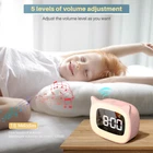【18 Melodies Alarm】Small alarm clock(4.53"W x 3.66"H) comes with 18 melodies to choose from. Alarm Ringtone includes elegant classical music, natural bird sounds & traditional beep ringtones, which can easily meet the needs of children. 【Volume Adjustable】Bedside alarm clock supports 5-level volume adjustment. The maximum sound can be up to 120 decibels, enough to wake up the without getting up late. 【Dimmable Night Light】A ring-shaped night light encircles a clear LED display screen. Turn on the night light by touching the top switch, 0%-100% full range brightness dimmer. Warm and soft lighting without dazzling is very suitable for accompanying children to sleep. 【Rechargeable Alarm Clock】Built-in non-detachable battery, can be recycled charging use. Even if the alarm clock is off, the battery still has remaining power for timed work. It still displays the time correctly without resetting after charging. The clock itself is charged by an adapter (5V 1A/2A output), but for environmental purposes, the adapter is not included in the package. 【Ideal Present for & Free Risk】Comprised of safe ABS, the lovely clock is certified by Fcc and RoHs. year . Cute design and soft lighting offer your a gentle companion, which can help them learn to sleep alone. It is the first choice for children's day and birthday presents, cute clocks are good for room decor.