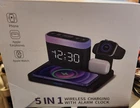This 5 in 1 wireless charger is the perfect addition to any nightstand. Featuring a sleek black design and 7 color night light, it not only charges your devices wirelessly, but also doubles as an alarm clock. Compatible with Apple products and other universal devices, it is a versatile and convenient charging solution. The charger also includes a docking station for your smart watch, making it even more efficient. Say goodbye to messy cords and hello to a clutter-free charging experience with this YEAPOWER wireless charger.