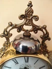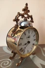 Unique items, rarities from 1890-1900, functional, good condition, rare Old French alarm clock Japy Freres Francois I from around 1900 Brass case, brass case back with glass for the balance, steel bell suspended in a brass crown, cardboard dial, with Roman numerals, balance mechanism with signature. Height 213 mm Case diameter 112 mm Depth 67 mm Dial 105 mm I invite you to other auctions
