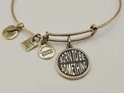 Alex and Ani Charm Bangle Bracelet Gold in color β¨οΈπ Condition is Pre-owned This one is in good condition . Take a look at the pictures for more details. Comes as shown in the photos. Will ship item via USPS Standard Ground Advantage mailing in a padded shipping envelope. I reserve the right to cancel any sale or bid due to late payment . If you need more pictures or info feel free to send me a email. We also offer combined shipping to help reduce shipping costs for multiple pieces . Usually 5 pieces on average in one shipping package is around 5 dollars for all to ship to your home or business. Thanks for looking β¨οΈβΊοΈπ