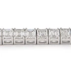 Stunning modern straight emerald cut diamond tennis bracelet. High jewelry by Alexander Beverly Hills. 54 emerald cut diamonds, 12.67 carats (apx 0.23ct each). Approximately F color and VS1 clarity. 18k white gold, 11.53 grams. Accommodated with an up-to-date digital appraisal by a GIA G.G. once purchased, upon request. Please contact us with any questions. Item Number BS1416