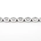Stunning modern bezel set east-west oval cut diamond tennis bracelet. High jewelry by Alexander Beverly Hills. 27 oval cut diamonds, 8.46 carats. Approximately F/G color and SI clarity. 18k white gold, 14.87 grams, 7.25 inches. Accommodated with an up-to-date digital appraisal by a GIA G.G. once purchased, upon request. Please contact us with any questions. Item Number BS1783