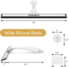 Shower Squeegee for Glass Doors, All-Purpose Squeegee with Suction Hook & Adhesive Hook, Clear Squeegee for Shower Glass, Windows, Mirrors, Tiles and Car Windows - 10 Inches, Clear About this item Acrylic Ergonomic Handle: Ditch the traditional metal handle and embrace the comfort and beauty of the clear acrylic handle. The curved design of our shower squeegee ensures a comfortable grip while the lightweight nature prevents wrist strain, making your cleaning experience more enjoyable. All-Purpose Squeegee: The wide silicone blade effortlessly removes water and foam from various surfaces such as shower doors, windows, mirrors, tiles, and car windows. Its versatility makes it a go-to tool for all your cleaning needs on smooth and flat surfaces. Shiny & Streak-Free: Say goodbye to streaks and smudges with ease. The window squeegee's efficient water-clearing ability ensures a sparkling finish every time without requiring vigorous scrubbing. Pair the glass squeegee with your favorite household cleaner for an added shine. Dual Hanging Options for Convenience: Enjoy the flexibility of two hanging solutions with the AmazerBath bathroom squeegee. Choose between the convenient suction cup hook for easy, removable placement or the reliable adhesive hook for a more permanent and discreet mounting option. Ideal for daily use and hassle-free storage. Sturdy & Durable Construction: Reinforced handle-to-blade connection ensures lasting durability and easy adjustments. Crafted from non-rust material, this shower door squeegee is built to withstand daily use and promises longevity, especially in damp environments like shower areas.