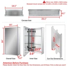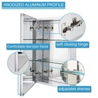 This frameless medicine cabinet inside and outside are mirror surface. Two adjustable tempered glass shelves, rugged, with transparent four fixed brackets integrated with tempered glass shelves, enough to accommodate and withstand your toiletries Adjustable 100-degree Soft closed hinges, allowing you to easily open the door without interference Grinding silver mirror design, pampering your hands and enjoying a wider view Simple mounting kit that can be easily mounted on the wall and very secure 【Multi Mirrors】medicine cabinet with Beveled edge mirror in front of the door; Mirrors on back of door and interior back of cabinet, Include side mirror kit for surface mounting. 【Durable material】Anodized aluminum profile, shining finish, strong rust-resistant capacity, lead to a stable and long lifetime, so it’s easy to clean this bathroom cabinet. 【Adjustable shelves】2 adjustable tempered glass shelves and has 9 adjustable heights to make sure you can place more daily necessities. 【Hinge】The mirror cabinet has two soft-closing hinges, which will slow down the closing speed of the door to avoid hitting the cabinet when you close the door and it is quiet. 【Installation】This medicine cabinet can be recessed or surface mounted, and it can also be mounted reversible (upside down). Please follow the instructions to install the cabinet step by step. Any confusion about assembling this medicine cabinet, please communicate with us~ All feedback will be replied within 12 hours.
