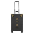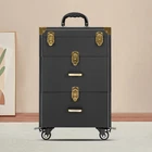 Aluminum Cosmetic Case Professional Trolley Makeup Train Case with Drawer Black Makeup Train Case, Rolling Makeup Trolley Case, Nail Polish Organizer, Jewelry Travel Cosmetic Train Case w/ 4 Wheels, Black Description If you are troubled by storing all your hairdressing tools in order and finding them easily, our makeup train case can be of great help to you. Featuring high durability, attractive appearance, large capacity, universal wheels, humanized handles, a telescopic rod, and more, this product is easy to carry outside while keeping practical and beautiful. It is an ideal choice for young manicurists, make-up artists, and hairdressers/cosmetics lovers to store various cosmetics. Key Features Beautiful Appearance: Elegant black color combined with a rectangular frame, smooth lines, and delicate lychee texture gives this product a stylish and beautiful look. High-quality bronze hardware and exquisite stitching also add to its appearance. Durable and Sturdy: This product is constructed with premium PU, PVC, and reinforced corners, aluminum alloy rod, zinc alloy-wrapped edge , which is waterproof, wear-resistant , and has a long service life. Categorized Storage : The 3-tier and compartment designs, cubicles, and a large clear pocket on the lid give this case a large capacity to hold your daily cosmetics and makeup tools in a categorized way, allowing you to quickly find what you want. And the dividers are removable for organizing different sized bottles. Easy to Move&Carry: 4 universal wheels (2 of which are lockable) ensure that the case can be moved smoothly and silently in all directions and allow for safe fixation to handle different road conditions. The telescopic handle and top handle give it high portability. Easy to Clean: The lid and drawer designs can prevent dust from entering, along with the waterproof surface, making it easy to clean. You just need to wipe off the dirt with a wet cloth. High Safety: The 4 latch locks and waterproof surface provide maximum protection and security for your toiletries, giving you peace of mind while traveling. Excellent Load-bearing Capacity: The sturdy construction and the zinc alloy frame provide the product with an excellent weight-bearing capacity of 88.2 lbs. You can place all kinds of hairdressing and beauty tools in it with confidence. Protective Packaging: To prevent the product from being damaged and bumped during transportation, we pack it with pearl cotton for maximum protection of your products. After-sales Service : We aim to provide quality products and services. If you have any problems, please feel free to contact us, and we will reply and solv e the problem for you as soon as possible. Details Back Buckles: The back of the luggage has two hardware eight-nail back buckles to make the case more stable and to ensure that it remains as good as new when repeatedly opened and closed. User-friendly Drawer Handle: The 2 comfortable drawer handles of the second and third tiers allow for convenient closing/opening of the drawers, thus ensuring easy access to the inside items. Application It is good for manicurists, makeup artists, both beginner and professional, freelance makeup artists, wedding makeup artists, celebrity makeup artist, and cosmetic trainees. Structure Overview The inside of the lid has a makeup bag where you can keep the things you use regularly for quick and easy access. The first tier can be used for nail varnish or other small items. The second tier is suitable for larger items such as hair dryers, curling wands, nail art machines, and more. The third tier has two compartments for medium items, such as cosmetics, hairspray spray. Specification Target Audience: Unisex Adult Caster Type: Swivel Mounting Type: Free Standing Material: PU, PVC, Zinc Alloy, Aluminum Alloy Color: Black Shape: Rectangular Number of Tiers: 3 Number of Wheels: 4 Max. Load-bearing Capacity: 40kg/88.2lbs Number of Keys: 2 Lid Size: 36*23cm/14.2*9inch Wheel Height: 7cm/2.8inch Telescopic Rod Length (Min.): 38cm/14.9inch Telescopic Rod Length (Max.): 86cm/33.8inch Second Tier Inside Size: 30*19.5*13.5cm/11.8*7.7*5.3inch Each Compartment of Top Tier Size(L*W): 3.5*3.5cm/1.4*1.4inch Each Compartment of Third Tier Size: 14.5*19*13.5cm/5.7*7.5*5.3inch Top Tier Height: 9cm/3.5inch Second&Third Tier Height: 17cm/6.7inch Overall Case Body Size: 36*23*49cm/14.2*9*19.3inch Overall Product Size: 36*23*101cm/14.2*9*39.76inch Package Size: 63*32*41cm/ 24.8*12.6*16.14inch Gross Weight: 10kg/22.04 lbs Product Weight: 9kg/19.84 lbs Package Included 1*Makeup Train Case 2*Keys Notes Please note that cosmetics or makeup tools are not included. This product is a carry case only. This product includes two keys. Please allow the slight color difference caused by the shooting light and 1-3 cm error due to manual measurement, and make sure you do not mind before ordering. Payment Delivery details Terms of sales About us Contact us Payment We accept ebay payment 。 Fees such as import duties, taxes are not included in the item price or shipping costs. These charges are the buyer's responsibility. Delivery details Shipping: 2-9 working days to: USA Terms of sales We maintain high standards of excellence and strive for hundred percent customer satisfaction. Feedback is very important to us. We hope that you contact us immediately before you give neutral or negative feedback, so that we can address your concerns. It is impossible to address issues if we do not know about them! About us Your satis faction is our ultimate goal. We work hard to earn your trust and future business. Our certified technicians have tested each item before shipping. The unit comes with 1 year limited warranty on all manufacturing defects. a) If you receive a defective item, you may return it or ask for a discount. Please contact us within 14 days after you receive the package. b) What you returned must be intact and in its original packaging as re? u. Customer is responsible for shipping costs of