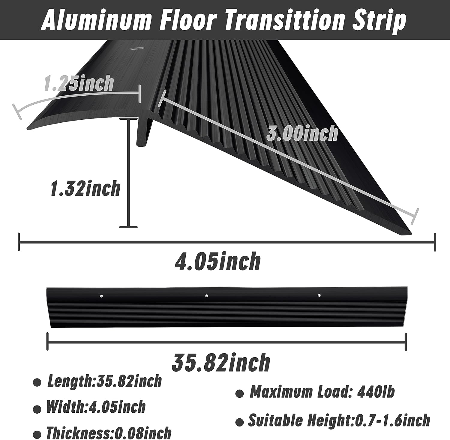 This transition strip is a game-changer! The sleek black aluminum looks modern and durable, perfect for bridging gaps between floors. Easy to install, stays firmly in place, and gives a clean, professional finish. Great value for the quality—highly recommend for any home upgrade!