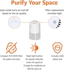 Product Details Color: White Product Dimensions: 9.6"D x 9.6"W x 14.3"H Floor Area: 1067 Square Feet Specification Met: Energy Star Certified Noise Level: 32 dB Controller Type: Button Control Wattage: 31 watts Item Weight: 3.02 pounds Department: consumer_electronics Country of Origin: China Item model number: AC2224A Power SourceItem Weight: Corded Electric3 Pounds Control MethodFilter Type: TouchHEPA PERFECT FOR PET OWNERS & ALLERGY SUFFERERS: Provides 360° air purification with a high Clean Air Delivery Rate (CADR) of 238 m³/h (140 CFM), refreshing air 5 times per hour in rooms up to 213 ft² (20 m²). Ideal for removing pet dander, pollen, and allergens. Outstanding 3-STAGE FILTRATION SYSTEM: Combines a pre-filter, deodorizing filter, and H13 HEPA filter and uses activated carbon to capture 99.97% of particles as small as 0.3 microns, effectively filtering out pet hair, dust, pollen, and other pollutants. (Compound activated carbon deodorizing and H13 HEPA ). REAL-TIME AIR QUALITY MONITORING: Built-in smart sensor detects indoor air quality with LED indicators: Red (“Poor”), Orange (“Moderate”), and Green (“Good”), keeping you aware of your environment’s health. CUSTOMIZABLE COMFORT WITH QUIET OPERATION: Choose from 3 fan speeds or let Auto Mode adjust based on air quality; includes a quiet Sleep Mode (32 dB) that won’t disturb your rest. SLEEK & MODERN DESIGN: With a compact footprint (9.6”D x 9.6”W x 14.3”H), this air purifier complements any room décor while delivering optimal air quality. ENERGY EFFICIENT & ECO-FRIENDLY: Powered by a 31-Watt DC motor and “Energy Star” certified for efficient operation and reduced electricity costs. Important Setup (User Instruction) : The product is delivered with the filter sealed for protection. Please follow the manual to remove the plastic wrap before the first-time use. An Seller Brand