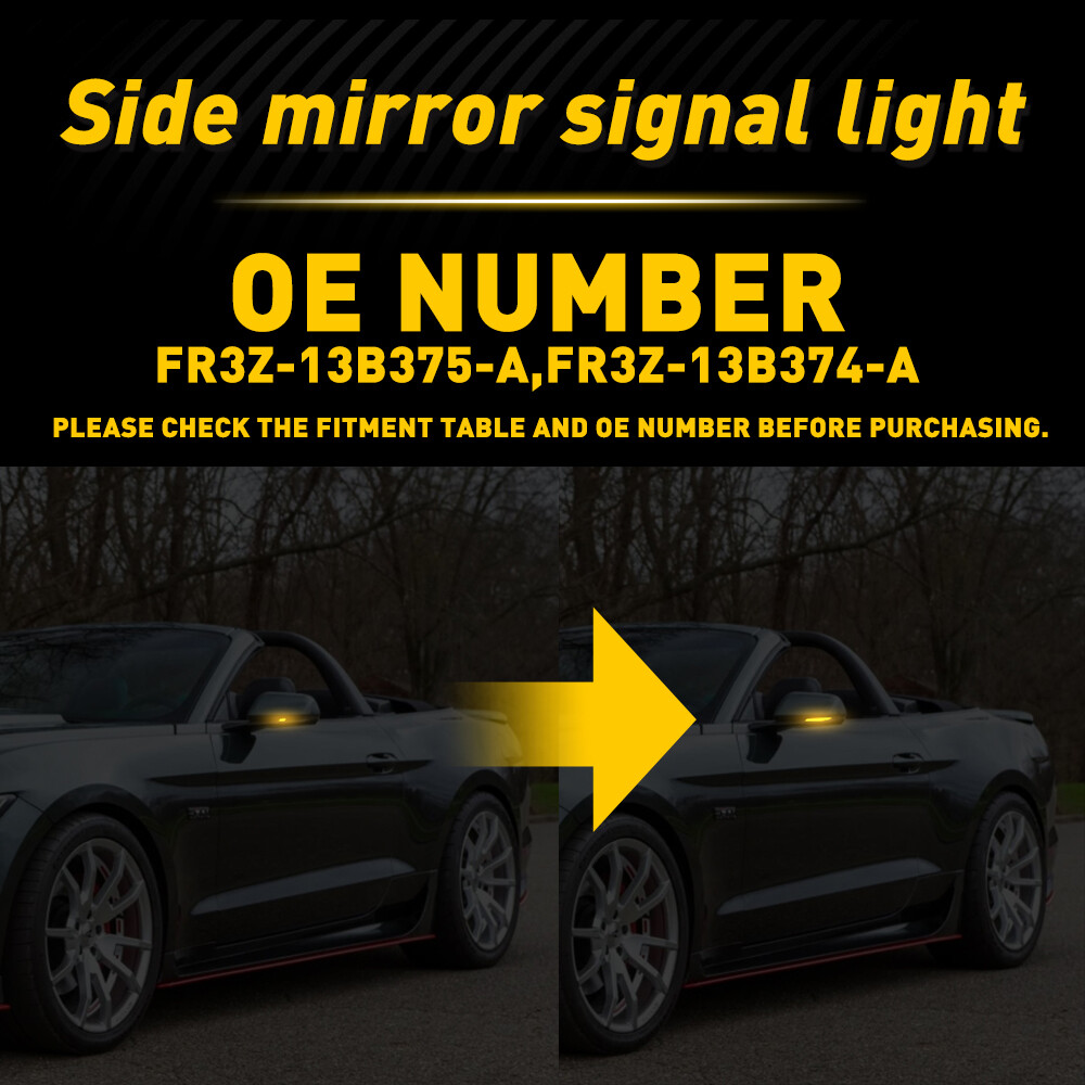 For 2015-2022 Ford Mustang LED Side Mirror Smoked Lens Turn Signal Light Lamps Fit for: 2015-2022 Ford Mustang Specifications: OE Number: FR3Z-13B375-A, FR3Z-13B374-A Lens color: Smoked Mode: Amber (dynamic lighting) Waterproof grade: IP67 Service life: 50000h+ Features: *High brightness Upgraded to LED dynamic turn signal light with low power consumption. It give off a bright and even light, providing drivers with a wider field of vision and making driving safer. *Stable lighting Made of superior LED beads extend its long service life. *Simple installation Amber Dynamic LED Side Mirror Smoke Turn Signal Light For 2015-2022 Ford Mustang For 2015-2022 Ford Mustang LED Side Mirror Smoked Lens Turn Signal Light Lamps Fit for: 2015-2022 Ford Mustang Specifications: OE Number: FR3Z-13B375-A, FR3Z-13B374-A Lens color: Smoked Mode: Amber (dynamic lighting) Waterproof grade: IP67 Service life: 50000h+ Features: *High brightness Upgraded to LED dynamic turn signal light with low power consumption. It give off a bright and even light, providing drivers with a wider field of vision and making driving safer. *Stable lighting Made of superior LED beads extend its long service life. *Simple installation Easy installation with direct replacement, other modifications are not required. *Satisfied service Our product with stable performance provides a better shopping experience for our customers. Warm notice: Please double-check the part number and models in the description to guarantee it fits your vehicle before purchasing. Packaging include: Side mirror signal light*2 table#Attrid701792 {border-collapse:separate} table#Attrid701792 tr:last-child td:last-child{border-bottom-right-radius: 10px;} table#Attrid701792 tr:last-child td:first-child{border-bottom-left-radius: 10px;} table#Attrid701792 tr:nth-of-type(1n){} table#Attrid701792 tr:nth-of-type(2n){} table#Attrid701792 td{padding: 3px;} table#Attrid701792{font-size:12px !important;font-family:Arial !important;color:#686868 !important;text-align:left !important;} table#Attrid701792 td:first-child{font-weight: 900; !important;;padding:3px;border:1px none ;} #m_pre701792{border:1px none ;overflow: hidden;border-radius: 10px;} Item Specifics Brand AUXITO Placement on Vehicle Front Left Right Lighting Technology LED Number of Bulbs DOES NOT APPLY Lens Color Smoke/Tinted Light Color Amber Type Mirror Signal Light Assembly Features Sealed Assembly Reflector Housing Manufacturer Part Number OEM#LAC_685_173_256 OE/OEM Part Number FR3Z-13B375-A FR3Z-13B374-A Bulb Shape Code Built-In LEDs Items Included DOES NOT APPLY Performance Part No Universal Fitment No Manufacturer Warranty 1 Year Interchange Part Number 2020 2019 2018 2017 2016 2015 Ford Mustang Driver Left Passenger Right Side Coupe Convertible 8Cyl 6Cyl 4Cyl 5.0L 3.7L 2.3L 5.2L GT V6 EcoBoost Premium GT 50 Years Limited Edition GT Premium Shelby GT350 Shelby GT350R Base V8 Bullitt GT V8 Shelby GT500 Chrome Housing Smoked Tinted Lens Full LED Sequential Amber Yellow Dynamic Parking Signal Towing Mirror Lamp Upgrade Superseded Part Number 2020 2019 2018 2017 2016 2015 Ford Mustang Driver Left Passenger Right Side Coupe Convertible 8Cyl 6Cyl 4Cyl 5.0L 3.7L 2.3L 5.2L GT V6 EcoBoost EcoBoost Premium GT 50 Years Limited Edition GT Premium Shelby GT350 Shelby GT350R Base V8 Bullitt GT V8 Shelby GT500 Chrome Housing Smoked Tinted Lens Full LED Sequential Amber Yellow Dynamic Parking Signal Towing Mirror Lamp Upgrade California Prop 65 Warning This product contains chemicals known to the State of California to cause cancer and birth defects or other reproductive harm. Mode Amber (dynamic lighting) Returns 60-Days LOVE IT or RETURN IT! FAQ ♥ If you have a decoding problem or any other problems, please contact us first, we will help you with it. We will reply you within 24 hours in working days. I'm a new seller, thanks a lot for your trust and convince! I will serve you with all my heart. ♥ Q1: Will this bulb fit my vehicle? A: We can match almost any vehicle to one of our bulb sizes. eBay only lets us include some vehicle fitments per listing, but if your vehicle does not show up on the compatibility table at the top of our listings, welcome you to contact us for free consulation before purchasing a product. Q2: My item has not arrived, what's taking so long? A: Sometimes items take longer than expected, especially if it’s going far or to rural area. Check with your post office to see if your item has been held up. Sometimes Royal Mail will not update a tracking number until it has arrived at its destination. If your item still don't arrive after a few days, let us know so we can double check for you and help solve it asap. Q3: My bulbs won't fit, help! A: Special bulb holder may be required. See if you can take the holder from the stock bulb. If not, let us know. The bulb size may be wrong, double check the item you received with the item you ordered. Do you have an aftermarket lighting housing? These may not be perfectly fitted for aftermarket bulbs and will require some manual modifications. Q4: Neither side lighting up? Both sides flicker, hyper flash, or work inconsistantly. A:Check the light fuses, and then check the ballast plugs to insure correct installation. If this doesn't work, there may be a voltage problem with the vehicle. You probably just need a relay or capacitor. Even though some bulbs are builtin resistors, they may still need a decoder. Pay & Ship (1). We gladly accepts payment via PayPal, We will ship your item(s) within 24 hours. (2). Before payment, please keep the consistency of Paypal address and ebay address. (3). Quantity orders are welcome! Returns (1). We offer 60 days free return policy. Please contact us within 60 days from the date you receive your order if you have any issues with the product or want return. Refund will be send after we got your resend package. (2). All returned items should be in the original packaging , return tracking information should be provided . C