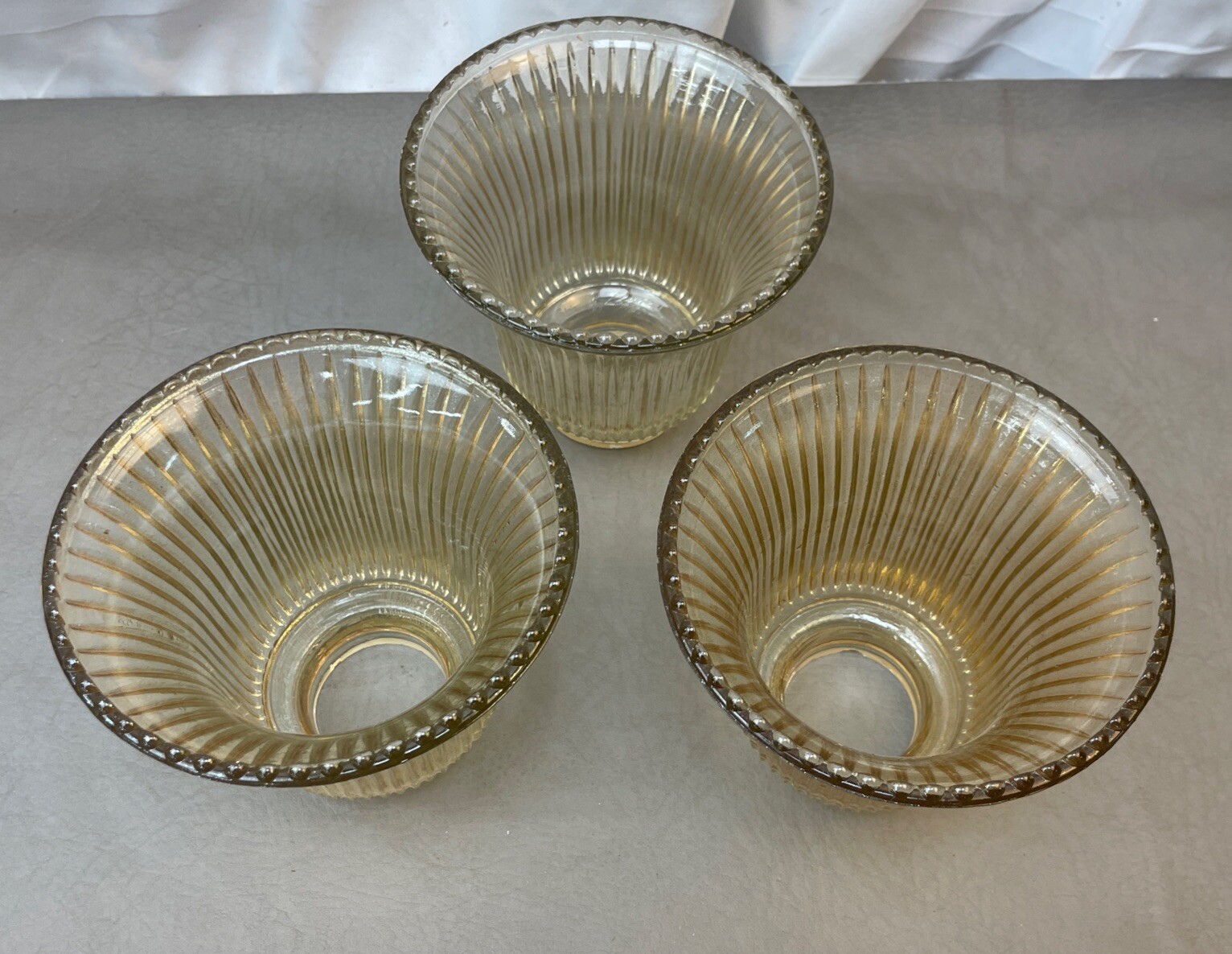Ceiling Fan Replacement Globe Light Lamp Amber Glass Ribbed Bell Shade Set Of 3. Condition is Used. Shipped with USPS Ground Advantage.