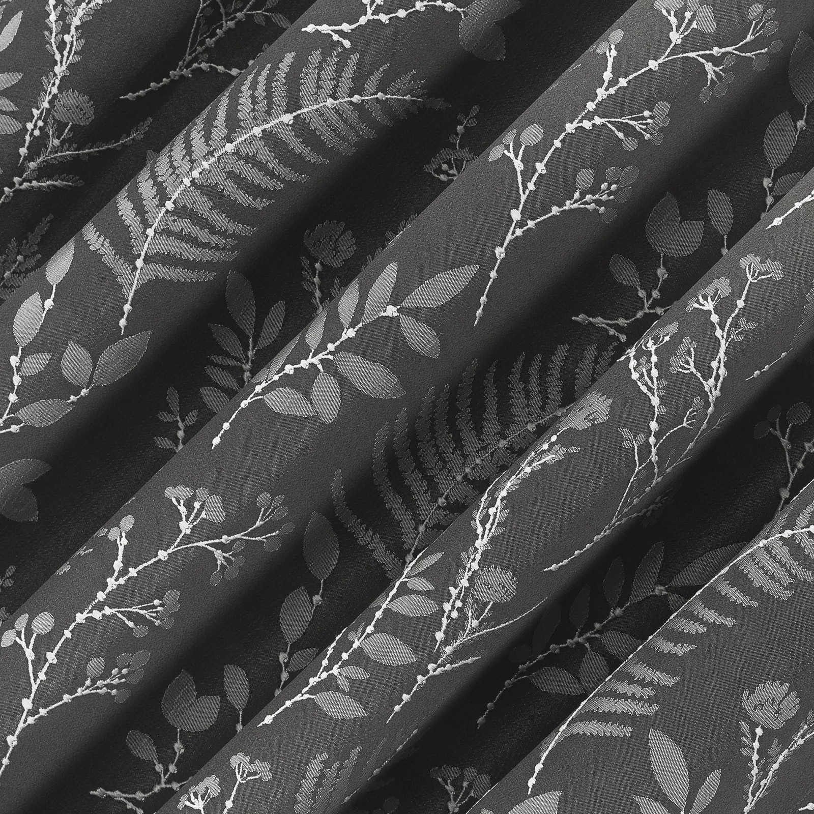 Featuring an intricately embroidered leaf pattern, Ambridge Embroidered Botanical Leaf Pleated Look 100% Blackout Back Tab Curtain Panel Pairs breathe life into any living space. Equipped with built-in metal grommets for easy hanging on standard curtain rods up to 1.5" in diameter. Extreme Blackout™ Thermal Lining is laboratory tested to block out 100% of light, reduce outside noise by up to 40%, and decrease energy lost through your windows by up to 40%. Comfort is optimized with thermal properties that help keep summer heat and winter chill out of your home. Hidden back tabs allow for easy slide-through installation on curtain rods up to 1.5" in diameter. Hang in your entertainment room to eliminate screen glare and reduce distracting outside noise, or in your bedroom for enhanced privacy and a sounder, more uninterrupted sleep. Pair includes 2 steel gray panels, each measuring 50" width by 84" length. Measure carefully before selecting your desired size and quantity. Rod not included. Machine wash cold on gentle cycle. Use non-chlorine bleach when needed. Tumble dry on low heat, using a cool iron as needed. Intricately embroidered leaf pattern adds botanical detail Extreme Thermal Blackout technology blocks out 100% of outside light Thermal properties help keep summer heat and winter chill out of your home Noise reduction up to 40% helps you get a sounder, more uninterrupted sleep Hidden back tabs fit curtain rods up to 1.5" in diameter Pair includes two (2) panels. Measure carefully prior to purchase.