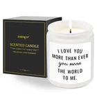 Anniversary Candle Gifts, Funny 1st 20th 30th 40th 50th 60th 70th Anniversary, Valentine's Day, Brithday, Christmas Gifts for Her Him Girlfriend Boyfriend Wife Husband - 7oz Lavender Scented Candles Product Detail: Materials: 100 Natural Soy Wax Measure: 2.75 * 2.75 * 3.54 inch Volume: 7 Fluid Ounces Burn time: Approximately 50 Hours Fragrance: Lavender Scented Package Includes: 1* 7oz Lavender Scented Candle 1* Exquisite Gift Box Customer Service: Lifetime Warranty ANNIVERSARY GIFTS - 7 oz soy lavender scented candle with the sweet sayings printed on the front "I love you more than ever—you mean the world to me.". Anniversary gifts for couple, parents, him, her, men, women, boyfriend, husband. Those who received this candle gift were filled with sweetness and happiness. 20TH 30TH 40TH 50TH 60TH ANNIVERSARY GIFTS - This romantic candle is the perfect gift to celebrate 20th, 30th, 40th, 50th, 60th and any wedding anniversary. Also can be used as a gift for Valentine's Day, Birthday, Christmas, Thanksgiving. This sweet candle gift will bring sweetness to these occasions as well as the holidays and can also serve as a beautiful decoration. 100% NATURAL SOY WAX - This candle is made by hand with 100% high-quality natural soy wax and premium essential oils. It burns more slowly and cleaner than paraffin wax, smokeless, harmless and non-toxic which is more beneficial to the environment and can be used for a long time with confidence. LAVENDER SCENT - This candle contains pure lavender essential oil, which emits a lavender scent when lit to help you sleep better, relax your body, regulate your mood, and reduce stress. And it also helps to freshen the air. Suitable for placement in rooms, studios, kitchens, living rooms, bathrooms, yoga studios, gyms. LAST FOR ABOUT 50 HOURS - A 7-ounce lavender scented candle burns for approximately 50 hours for a long-lasting fragrance. This scented candle with a 100% cotton wick guarantees a constant flame and maintains the ideal flicker range. We are committed to providing customers with a satisfactory shopping experience, please feel free to contact us if you have any questions.