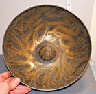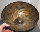 Antique Brass Islamic Arabic Calligraphy Engraved Medical Bowl. This beautiful bowl measures 10" across and 5 1/4" tall. It is hefty and has some minor scuffs and scratches from age and use. Smoke free home. Google lens would not translate the written on the inside so I do not know what it says (wish I did). It is a really wonderful piece of the Middle East design and function.