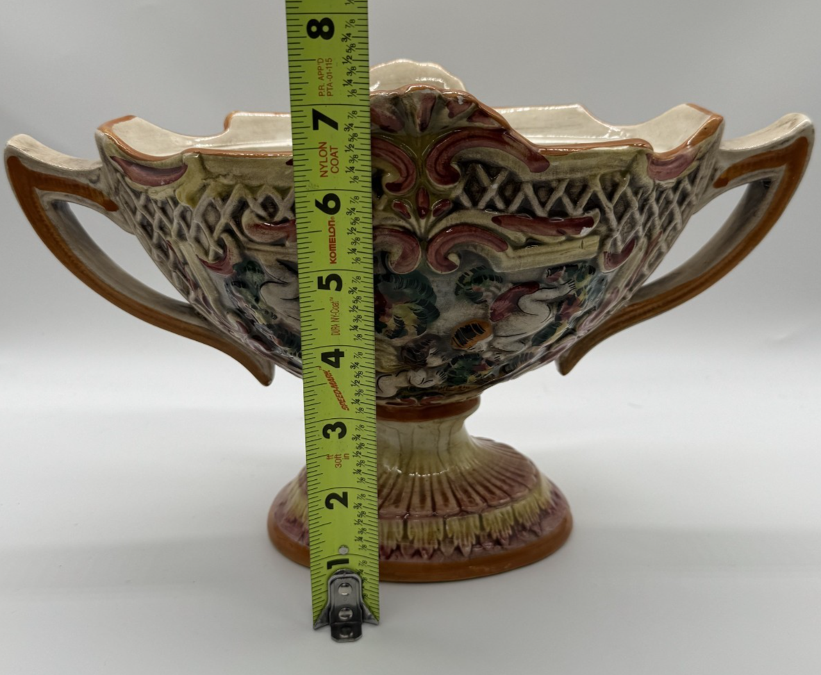 This Antique Capodimonte Made in Italy Norleans handmade Bowl Centerpiece is a beautiful and unique piece that adds a touch of Italian charm to any room. Hand-painted on porcelain, this multicolor centerpieces are handmade in Italy, showcasing exquisite craftsmanship and attention to detail. Perfect for adding a touch of elegance to any space, these centerpieces are truly one-of-a-kind and a beautiful addition to any decor. can use a cleaning ⭐️ Condition: preloved, does have some small chips & has a crack see pictures 🚭 Smoke-free Please review all photos carefully prior to purchase. I reuse clean packaging materials whenever possible to help reduce waste ♻️ Feel free to message me with any questions 🤍 If there are any issues with your item, please contact me so I can help resolve them before leaving feedback. Thank you for viewing, and please check out my other listings!!