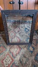 Offering this antique wood frame shaving mirror. Measures 16.5" x 12.5. This piece has a great look with natural dark patinated wood frame and a great wavy glass. In good overall condition. Has minor reflective loss on edge but nothing major. Great mirror for your collection. Thanks for looking.