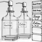 Thick Glass Soap Dispenser - Made Of thickened High-Quality Glass, natural and safe to fill with a variety of room-temperature daily use liquids. Anti-fingerprint, the Sturdy Pump Is Made By Premium 304 Stainless Steel Which Can Kept Long Lasting Bright That Not Easy Corrode Or Rust. Antique Design - Gorgeous Antique-ish Looking Design Stylish Bathroom Soap Dispenser. Streamlined Bottle is Soft Square with Rounded Corners, stunning and anti-slip. It can be placed in any countertops, bathroom, kitchen, or office. Use it as an ornament to exemplify your unique taste as well. Value 2 Pack & 6 Stickers - Value 2 Pack Glass Soap Dispensers. Each Dispenser Pump Holds 18 Ounces Of Liquid Soap. Reusable and refillable, Eco-friendly green, money-saving. Comes with Elegant Design 6Pcs Waterproof Clear Stickers, you can name for the soap. It is also a great gift idea for your family and friends. Fits Any Soap - Our soap dispenser can use for liquid soap, dish soap, lotion, aromatherapy essential oil blends, shampoo, body wash, hand soap, massage oils. You Can Use It as Kitchen Soap Dispenser Or Fill It With Lotion as a Modern And Practical Bathroom Decor. Product Description Elegant and timeless Antique-ish Looking Design Clear thickened Glass Soap Dispenser. These bottle are very practical, can be used to pack your organic skincare product in daily life to meet your daily needs. The bottom has the anti-skid thread, uniform, and strong appearance. Suitable for hand soap, dish soap, shampoo, body cleanser or lotion, etc. Durable & Anti-fingerprint, premium material construction with 304 + 316 Rust Proof Stainless Steel Pump. Waterproof Stickers Included "Soap", "Dish Soap", "Hand Soap", "Lotion" and 2Pcs Clear Stickers. Adjustable And Removable, Give Your Countertop Luxurious Feel. Made of high-quality thickened glass, natural and safe. Washing hands made easy! Helps you in kitchen! Easy to use while showering! Specification: Type: Soap Dispenser Material: Glass Color: Crystal Clear Capacity: 18 OZ USING TIPS: Recommended To Rinse With Water Or With Neutral Wash Products And Wipe With Cloth. Package Includes: Value 2 Pack Glass Soap Dispensers 6 x Waterproof Clear Stickers