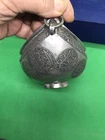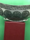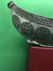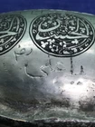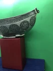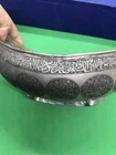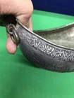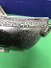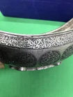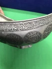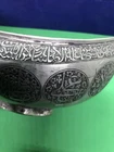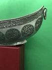 ~~~~~~~~~~~~~~~~~~~~~~~~~~~~~~~~~~~3/4/24 This antique Islamic begging bowl is a unique piece of art with intricate calligraphy and carving. The bowl is made of silver plate or white metal , and has an engraved signature on it. Originating from the Islamic/Middle Eastern region, this antique original has a history dating back to 1850-1899. The bowl is in excellent shape and is a rare and collectible item. It has a unique Sub-Type called Begging Bowl Darvish Kaskuol which makes it even more unique. This piece has been carefully crafted and is a great addition to any collection. I have not tested the metal to see if it’s silver or not but I’m only selling it as silver plated or white metal . It have two original loop on each side to attach a chain and it will be carried on the neck for begging . This kind of bowl it was used for known religion as aliallahe related to the people called DARVISH . This kind of people supposed to be the worlds most honest peoples and incredibly helpful for the society . If so ! IT IS IN GREAT CONDITION IT LOOKS SO UNUSUAL AND BEAUTIFUL AND VERY RARE PIECE . IF NEED ANY MORE INFORMATION PLEASE LET ME KNOW. SIZE HEIGHT :::::: 10.8 cm LENGTH :::::;; 21.2 cm WIDTH ::::::::: 12.7 cm WEIGHT :::::: 452.1 grams MAKE SURE TO CHECK MY OTHER ITEMS IN MY STORE PLEASE. han/4/1/18 00620/00770/0081