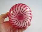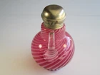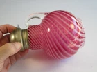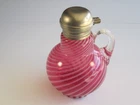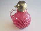 Old antique circa about 1888 Cranberry Opalescent Glass Reverse Swirl Pattern Syrup Dispenser. Probably made by Model Flint Glass. Glass has no chips or cracks and is nice and clean. Top lid is a little loose but still is functional. The syrup is about 6.5" high. Just in from an old estate sale.