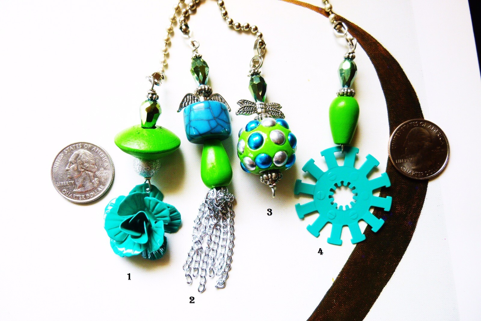Ceiling Fan Pull Chain Extension .... One-of-a-kind handmade in USA NOTE: Only one of each style is available. You Choose one or more MIX & MATCH This is for ONE decorative pull chain STANDARD 12” #6 ball chain with Connectors Contact seller if purchasing more than one or if you need short or longer chain.