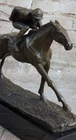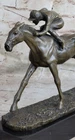 Art Deco Hot Cast Male Jockey and Horse Bronze Trophy Sculpture Figurine Artwork Art Deco Hot Cast Male Jockey and Horse Bronze Trophy Sculpture Figurine Artwork Condition : This sculpture is in a perfect condition. Bronze Dimensions with Marble Base: Height 9"" X Width 11.5" Marble Dimensions:11 1/2" X 4" Height without base:8" Weight:12 LBS Inventory:53Y3764535 Gear up for a thrilling ride like no other with this captivating bronze sculpture! A true masterpiece of motion, this dynamic piece captures the heart-pounding intensity of a high-stakes race. At its center, a steadfast thoroughbred and its skilled jockey surge forward with unparalleled determination, a partnership bound for victory. Every sinew of the horse's powerful frame ripples with energy as it charges down the grassy track, its tail billowing like a flag in the wind. The jockey, an embodiment of unwavering resolve, urges the horse on with fervent encouragement, heels dug firmly into the stirrups. Their unwavering focus is fixed solely on the finish line that beckons in the distance. Meticulously crafted using the revered lost wax method, this sculpture is a testament to the artistry and skill that goes into each and every detail. The horse's musculature is exquisitely defined, a tribute to the athleticism and grace of these majestic creatures. As the wind whips through their hair, the scene comes alive with a sense of motion and vitality that is truly mesmerizing. Whether displayed in a grand gallery or as a focal point in a cherished space, this action-packed piece commands attention and ignites a sense of awe. For those who cherish the spirit of competition and the thrill of the racetrack, this sculpture is the ultimate embodiment of ambition and dedication. An ideal gift for equestrian enthusiasts or anyone who resonates with the pursuit of excellence, it bears the distinguished signature of Milo—an assurance of artistic authenticity and a symbol of the passion that drives both horse and rider to reach for the stars. JOCKEY RIDING HORSE BRONZE STATUE FIGURE FIGURIN HOT CAST MARBLE BASE SCULPTURE www.bronzhaus.com Video will open in a new window Using the eBay App? Paste link into a browser window: [isdntekvideo] Shipping Terms : Most of our items are shipped via USPS (United States Postal Service) mail or UPS. Most orders are shipped within 24-48 hours of purchase. Please be aware that not all items are available for USPS shipping due to size and weight. We do ship to Hawaii, Alaska, Canada, Puerto Rico, APO/AE, and U.S. Virgin Islands, however, an additional charge may be required. Please contact us before making any purchases in these areas. For Non-USA customers, you may be responsible for all duty, tax, brokerage fees that may be due upon delivery (shipping costs cover freight charges only). We also ship internationally. Please refer to the "Shipping and Handling" chart for the rates for each area. Payment : We accept just about any form of payment. PayPal, Master Card, Visa or American Express credit cards. Money orders, cashiers checks, and even personal or business checks. For governmental institutions, we will also accept a purchase order. Please understand that for personal or business checks we have to wait for the check to clear (usually 7 days) before shipping. Condition : New Detailed Hand Crafted Hot Cast Bronze Satisfaction Guaranteed. This is Stock Photo, Slight Color Variation!! Listing and template services provided by inkFrog