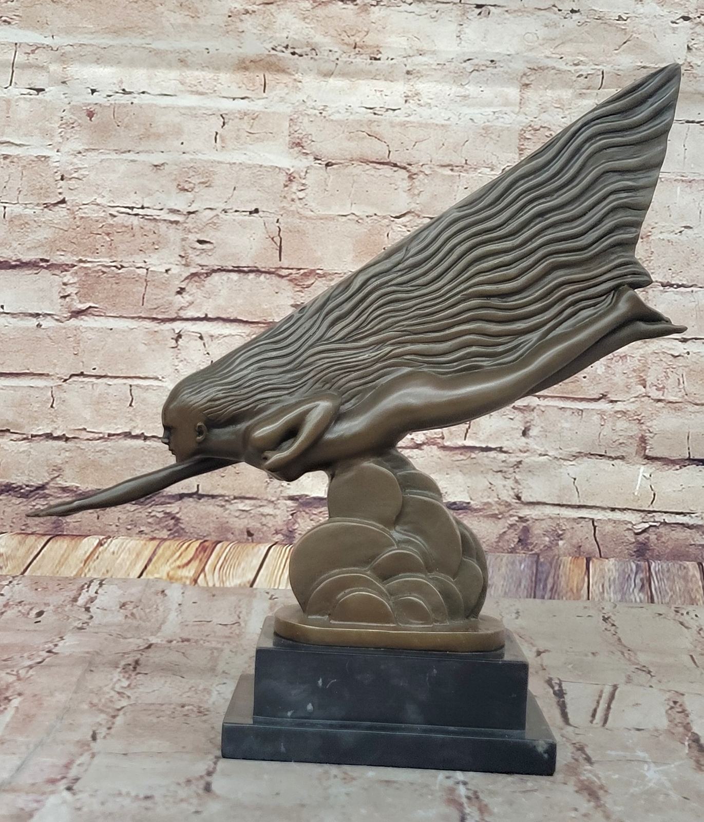 Condition : This sculpture is in perfect condition. Bronze Dimensions with Marble Base: Height 14" X Width 16" Marble Dimensions:6" X 4.5" Height without base:12" Weight:10 LBS Inventory:84RL03863448 This extraordinary Art Deco Bronze Statue, titled "The Comet," is a masterpiece created by the renowned artist Guiraud Riviére, known for his exceptional talent and artistic vision. The sculpture features a captivating scene of a nude woman with gracefully extended body and long hair resembling the tail of a comet cascading down her back. This bronze artwork captures the essence of beauty and elegance in a dreamlike form, showcasing intricate details and exquisite craftsmanship. Resting on a luxurious two-layered marble base, "The Comet" stands as an unparalleled piece in its class. The combination of the finest bronze material and meticulous casting process ensures a remarkable resemblance to the original artwork. Crafted with precision and attention to detail, this statue serves as a captivating focal point that demands attention in any exhibition or art display. With a commitment to quality, each step in the production of "The Comet" adheres to strict standards to guarantee the finest bronze articles. This ensures a truly exceptional piece that will stand the test of time, making it a coveted addition for collectors and enthusiasts of bronze sculptures and Modern Art. Embrace the allure of "The Comet" and let its mesmerizing beauty and timeless elegance enrich your collection or exhibition, captivating the admiration of all who appreciate the depth and beauty of bronze art. Signed Art Nouveau Nude Swimmer Bronze Sculpture Vintage Statue Figure Figurinenbsp; Video will open in a new window Using the eBay App? Paste link into a browser window: [isdntekvideo]
