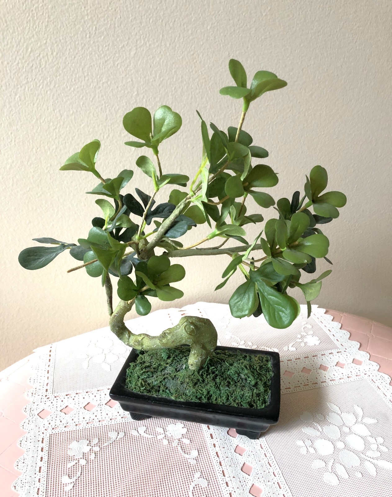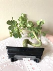 Boxwood tree measures approximately 9"L x 4"W x 11"H and is in a rectangular black ceramic planter. Pine tree measures approximately 13"L x 6"W x 9"H and is in an oval green ceramic crackle planter with real stone pebbles surrounding the base of the tree. Both appear to be made of plastic, yet so very realistic. Excellent condition. Realistic looking pair of elegant bonsai that require no water or special care! Long time collectors downsizing our collections of antiques, collectibles & other unique items...hoping someone else will treasure and enjoy!