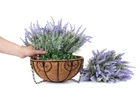 Artificial Hanging Basket with Lavender Flowers, Faux Silk Lavender Plants in Coconut Lining Basket for Home Decoration Outdoor Garden Yard Patio, 14 Bundles with Baskets The hanging plant basket is carefully crafted baskets and high-quality artificial orchids that require no maintenance and will bloom all year round. You don't need to worry about watering or caring for your plants. The rust-resistant coating on the sturdy steel with a black vinyl coating also provides excellent protection against rust, ensuring it lasts for years to come. Beautify your corridors, balconies, study rooms, dining rooms, and more with this low-maintenance, natural-looking option. The hanging flower basket is lined with metal and coconut palm, which is both environmentally friendly and breathable, preventing water accumulation. It creates a beautiful and refreshing atmosphere, making you feel like you're in a beautiful spring garden. Use it to decorate your patio, lawn, windows, and more, creating a charming and welcoming atmosphere that everyone will love. The pot size is 12" x 12" x 6" (LxWxH) with a 13.5-inch chain, and the assembled size is approximately 13" x 13" x 15.5" (LxWxH). The package includes 12 branches of lavender flowers with leaves, hemispherical foam, a leaves hat , and a basket, allowing you to create unique flower arrangements. Get creative with this assembly project that can be assembled in just 5 minutes for a beautiful result that the pictures. Add natural beauty to any space with our high-quality artificial flowers that won't wither or require maintenance. The coconut palm basket is crafted for durability with sturdy steel and a black vinyl coating for rust protection. The hanging flower basket arrangement is perfect for decorating your house, garden, terrace, balcony, doors, and windows, making it a versatile and attractive option for any space. Use it for daily decoration or special events like weddings, where it will add a touch of natural beauty that will delight your guests. Our top priority is customer experience, so please don't hesitate to us with any questions or concerns. We want you to be completely satisfied with your purchase. The fake lavender came with a powdery coating to make it lifelike the real . Please shake off excess on the surface before using