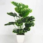 Product Description: Artificial Plants Green Palm Leaves Monstera Home Garden Living Room Material: plastic Size: A: Length 59cm, leaf width 21cm B: 50cm, 18 leaves, without flower pot C: 50cm, 18 leaves, without flower pot D: 50cm, 18 leaves, without flower pot E: 30cm, 9 leaves, without flower pot F: 40cm, 12 leaves, without flower pot Package Included: 1 x Monstera Plant