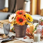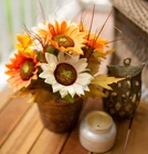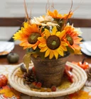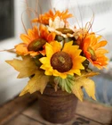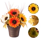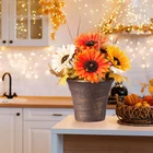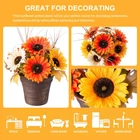 Cute Sunflowers Pot for Home Decoration Material: Silk cloth and plastic Color: Yellow Orange Sunflowers Size: Flower Pot's diameter:10.8" x 3.6" x 13" Package: Artificial flowers in pot × 1 Warm Notice: The flowers may have a little deformation after a long time shipping, you can adjust them to the normal state by using a hair dryer or hot steam. Due to the long sealed environment, there may be slight smell, please put it placed in ventilated place for 1-2 days before you used it. Due to the light and screen setting difference, the color of item may be slightly different from the pics. Artificial Flowers Potted - The packaging includes a faux sun flower potted plant, which is a combination of silk flowers and eucalyptus stems and leaves. The pot is made of pulp, sturdy but cannot come into with a large amount of water, The potted plant size is inches. Unique Designs - Each Sunflowers floral arrangement in pot is handcrafted. The faux sunflower is made of high-silk material, the fake flower stem is wrapped in plastic wire.The realistic foliage, soft stems,and handcrafted blooms give an everlasting refreshing look and feel to your floral arrangements No Need Maintenance - (Flower Decor Solution) fake sunflower potted plant do not require watering, pruning, or worrying about insects, and the material is safe and odorless, uv resistant, will maintain vivid color for ever and it can be reused. Occasions - The Trycolor sunflowers arrangement in pot is perfect for wedding centerpieces, restaurants, bathrooms, farmhouses, office home decor indoor. You may put it on your desktop, living room, bookshelf, counter, balcony, dining room, tabletop, and restaurants. The silk artificial flowers are great gifts for birthdays, mother's day, anniversaries, bridal showers, baby showers, housewarmings, celebrations, and parties Set includes - 1 uniquely designed sunflower pot. Bright color, with eucalyptus leaves, colorful sunflowers and other elements, the whole plant is real and natural, and it is the perfect decoration.