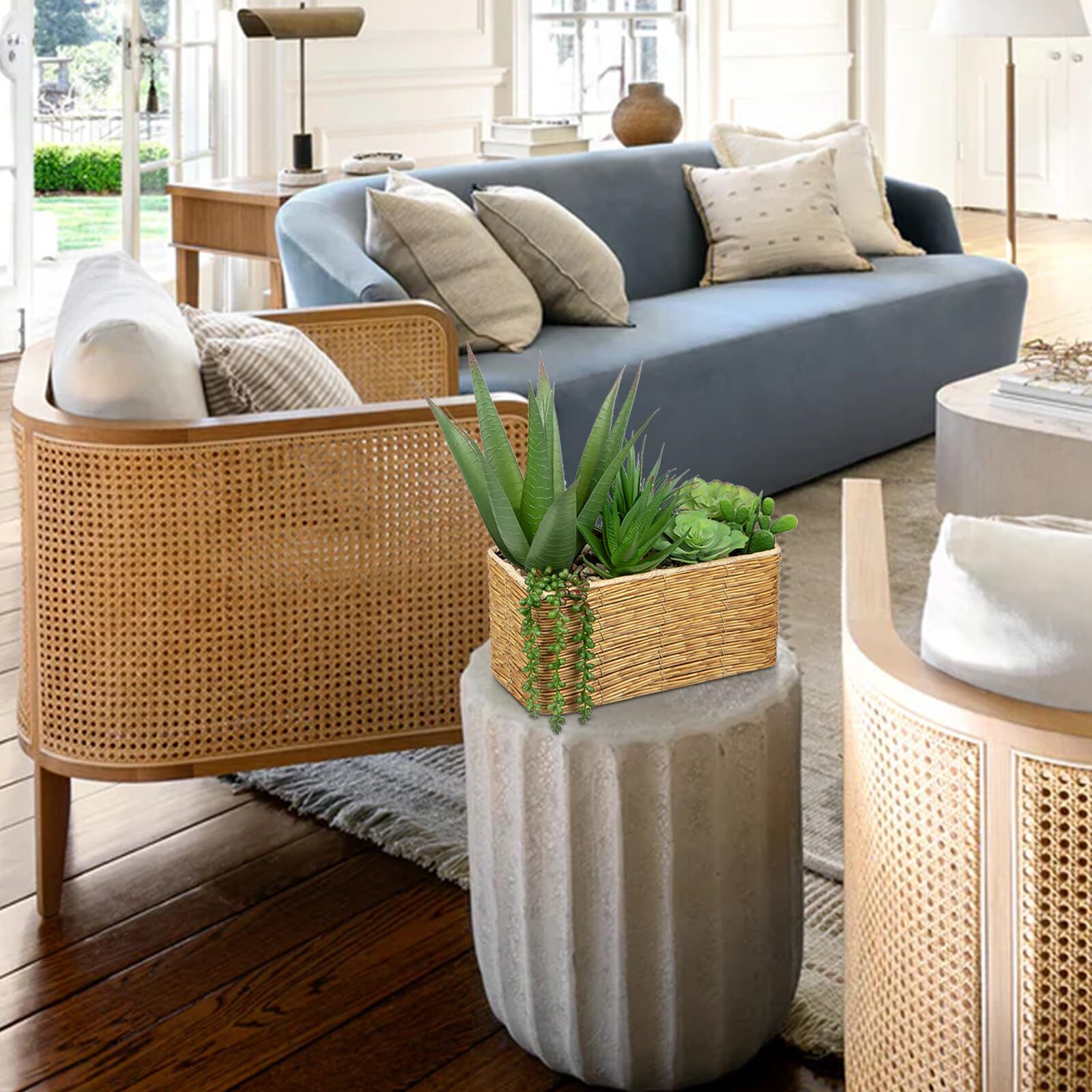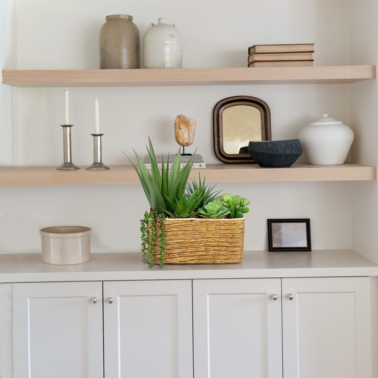 This faux succulent arrangement is absolutely stunning—it looks so real and adds a fresh, modern touch to any space! The woven basket gives it a rustic charm, perfect for home, office, or shelf decor. No watering needed, yet it stays vibrant and stylish year-round. Love how lifelike each succulent is—great quality and a fantastic deal for the price!