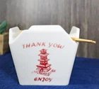 This Asian Takeout To Go Box Shaped Bowl With Chopsticks Set is made of ceramic porcelain and bamboo. Measurements: Serving Bowl Diameter 5" and 4" tall. Chopsticks are 9" long. The ceramic bowl is Microwave and Dishwasher Safe. Handwash the wooden chopsticks. The bowl set weighs about 1.5 pounds. Bowl has a 16 FlOz capacity. This Asian Takeout To Go Box Shaped Bowl comes with a pair of wooden chopsticks. The bowl features a very convenient chopstick rest at every corner of the bowl. The bowl is great not only for Ramen or Donburi but also for soup, cereal, rice or what have you! Perfect gifts for college students, working professionals, housewarming or what have you. They also make beautiful decoration for your kitchen and home. This Asian Takeout To Go Box Shaped Bowl comes with a pair of wooden chopsticks. The bowl features a very convenient chopstick rest at every corner of the bowl. The bowl is great not only for Ramen or Donburi but also for soup, cereal, rice or what have you! Perfect gifts for college students, working professionals, housewarming or what have you. They also make beautiful decoration for your kitchen and home.