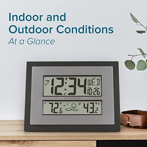 This clock is amazing! It automatically sets itself and shows both indoor and outdoor temperature with a weather forecast. The display is super clear, and I love that it can stand on a shelf or hang on the wall. It was delivered quickly and works perfectly.
