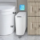 Touchless Trash Can: Automatic infrared sensing technology, when your hand or any object over the sensing area, the lid will open, touchless mode is more hygienic. Those with mobility problems may find the automatic feature more convenient than foot operated models. Requires 2 AA batteries (not included) Designed for Narrow Spaces: Our smart trash can has a slim shape that makes it a fit in a bathroom or wherever space is tight. Are you still annoyed that the narrow space in the room is being wasted? Use it to improve your space utilization Countdown Light: If your hand stays in the sensing area, the green light is always on and the lid remains open. When your hand leaves, the green light starts flashing and the lid closes automatically after 5 seconds Excellent Sealing Ability: The lid fits closely to the mouth of the trash can, avoids garbage exposure, and contains odors, keeping your room clean and fresh Garbage Bag Fix Ring: Removable inner fix ring locks the garbage bag in place and hide the extra trash bag, making it more beautiful and elegant Stay open: The lid remains open when your hand or other object is in the sensing area. You can also press the button to open or close the lid manually
