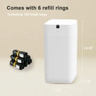 【Self-sealing trash bag】Smart Trash Can features a one-touch self-sealing mechanism that automatically packs the garbage by simply pressing and holding the touch button, so you don't have to touch the trash directly. 【Automatic bag replacement】After removing the packed garbage bag, Trash Can will automatically replaces it with a new one, saving you the hassle of frequent bag changes and greatly saving time and effort. 【Long-lasting refill bag ring】When you purchase the Smart Trash Can for the first time, we will provide a complimentary set of 6 refill bag rings, each containing 20 trash bags, totaling 120 bags. 【Touchless Lid Opening】With a simple wave of your hand or a slight bend of your knee, the lid opens quickly, allowing you to dispose of trash without any physical contact. Say goodbye to touching dirty surfaces, isolating odors, and experience a more hygienic and convenient way of discarding waste. 【User-friendly with voice prompts】Smart Trash Can features voice prompts that make it easy for everyone to operate, including children and the elderly. 【Long battery life】Trash Can's battery charges for 7 hours and provides a battery life of 90-180 days. 【One-Year Warranty Provided】offers a one-year warranty for any defects caused by non-human factors. If you have any questions or concerns, please feel free to contact us at any time. We are here to assist you.