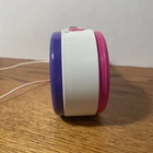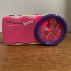 This vintage Barbie clock/FM radio is a must-have for any Barbie collector or fan. Made by Mattel in 1995, it features a lit-up face and alarm function. The clock is battery-powered with a quartz movement and has a multicolor plastic design. The clock radio is in its original, unopened packaging and has not been sure of the chime sequence. It is a great addition to any collection and perfect for teens, girls, and unisex kids who love fashion and vintage/retro style. Features of volume limiter button inside the battery pack. The battery pack has very minimal corrosion doesn’t affect it working. Tested and is working. This will ship without the batteries in great vintage condition.