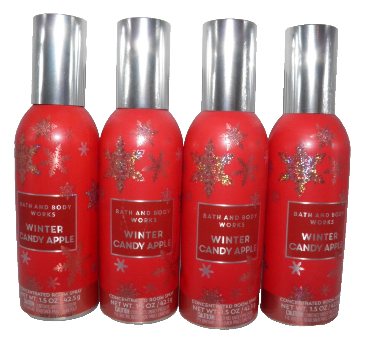 BATH & BODY WORKS WINTER CANDY APPLE ROOM SPRAY (4 PACK) CONCENTRATED 1.5 oz Each Mailing Address - We will ONLY ship to the address on file with ebay. Before making a purchase, please ensure that your address is correct. We may otherwise cancel the sale. Handling Time - Our handling time is set to THREE BUSINESS DAYS. We ship packages Monday - Friday, with the exception of holidays. This listing is NOT sponsored by, affiliated with or representative of the mentioned brand(s), trade name(s), trademark(s) and does not claim any ownership of such. All trademarks or brands mentioned in this listing are registered trademarks of their original owners who reserve all their rights and ownership. The use or mention of any trade-name, product name, or trademark is necessary and for identification and is for reference purposes only.