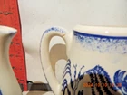 This pair of wall pocket planters is a charming addition to any room. The blue color and 1950s style of these ceramic planters make them a unique and timeless choice for collectors. The planters are suitable for display on walls and are perfect for those who enjoy decorative collectibles. The subject of these planters is the beloved blue willow, a symbol of elegance and strength. These planters are a great gift for collectors and a beautiful addition to any home decor.