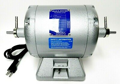 BALDOR 359T MOTOR JEWELRY DENTAL POLISHING LATHE BALDOR 359T Polishing Lathes for precision, trouble-free polishing. All lathes are made of heavy construction, dynamically balanced rotor and shaft provides vibration free with rubber feet minimize vibration and quiet operation. This motor is widely used in the Jewelry and Dental industry. Baldor polishing motors are sealed bearing sealed for life will never be affected by dust and debris. A High Performance heavy duty motor made for many years of continuous trouble free use. This is the Baldor 359T single speed 1/2 HP polishing motor with taper fit shafts. Baldor taper fit shafts use special taper fit spindles that slide onto the taper fit shafts and then are "tapped" at the spindle end with a soft wood hammer for a secure friction fit. Spindles are removed by rotating the spindle removing ring pins. As the screw-fit rings rotate out, they push the friction fit spindles off the shaft. The 359T measures 14-1/4" from tip to tip of the taper fit shafts. The shaft height is 5-1/4" measured from the middle of the shafts. SPECIFICATIONS: JETS Product # 1601-359 - Model: 359T Lathe Totally Enclosed - HP: 1/2 HP - Single Speed: 3450 RPM - Double Shaft: 3/8" shaft diameter with 1/4" taper - (0.375" shaft / 0.250" taper) - Power: 115 Volt - Factory Connected Power 8Ft - 3 Conductor Cord with Plug - Phase: 1PH - 60HZ - Amps: 4.7 - Rating: 40C AMB-CONT - UPC: 781568127834 - Ship Weight: 36 LB NOTE: Motor is Made in USA, UL Listed and CSA Certified – A Full 3 Year Warranty against burnouts, defective materials, and workmanship, covers all parts except those subject to normal wear, by Baldor ABB. Last 2 pictures show the tapered spindle/s see our store ebay listing ID # 201166590867 SHIPPING: Via UPS GROUND NOTE: Visit JETSTOOLS our ebay Store where you can see various Motors, Commercial Grades of Spindles, Arbors, Miniature Mandrels and Holders along with more J ewelers E quipment T ools and S upplies . JETS Inc. 36 UPS G 1120 CKSP M
