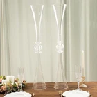 Decorate your special day with our plastic vases in metallic hues! Whether showcasing hydrangeas, putting roses on display, or simply shining solo, this set of eye-catching vases is sure to add extra visual appeal. Our vases are great for weddings, parties, events or simply using them in your own home. Place these decorative vases on an entryway table or used them as table centerpieces during dinner to compose a perfect focal point for your decor. What You Get: Each order is for two (2) vases. Measurements: Height: approx. 31 inches. Top and bottom opening diameter: approx. 5.5 inches. Depth: approx. 13.5 inches. Middle ball width: approx. 3.25 inches. Material: Plastic. Small assembly is required. Flowers and other decorations are not included. Get the party planning started and add them to your cart today! ✨TALL ELEGANT CENTERPIECE – Add an eye-catching highlight to your party or home with this tall reversible trumpet glass vases. ✨PREMIUM MATERIAL – Crafted from high-quality glass. These elegant vases are perfect for your home, garden or event decor. ✨GREAT GIFT IDEA – Accent your special day with our graceful trumpet vases. It also makes a wonderful gift for weddings, holidays and anniversaries. ✨EVENT DECORATIONS – Pair these vases with other wedding decorations, such as tablecloths, overlays, chair covers, artificial flowers, lighting and DIY craft supplies. ✨DIMENSIONS – Each order is for 2 tall trumpet vases. Each vase measures approx. 31" tall. Top opening is 5.5" wide.