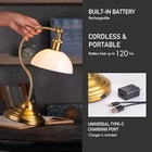 Return Policy Fast Delivery Trusted seller Bankers - Cordless LED Table Lamp, Battery-Operated, Rechargeable, 3-Level Dimming, Universal USB-C Charging, 180° Swivel Head, White Jade Glass Shade, Antique Brass Product Description Portable and Convenient: Equipped with a USB-C charging port for easy charging, this lamp is designed for flexibility and can be placed wver light is needed without dependence on a power outlet. Adjustable Brightness: Experience three levels of dimming (20%, 50%, 100%) to tailor lighting to your specific needs, perfect for reading, relaxing, or enhancing ambiance. Long-Lasting Battery: Enjoy up to 120 hours of cordless illumination at the lowest setting with a built-in rechargeable battery, ensuring reliable light anyw without constant recharging. 180° Swivel Head: Features a 180° adjustable lamp head for optimal light direction, providing focused lighting for detailed tasks, reading or soft, diffuse lighting for general ambiance. Timeless & Versatile Design: Choose between elegant glass shades in green or white or a harmonious metal shade to match the classic curved stand and base, enhancing any room's aesthetic. Shipping Returns Payment Shipping Shipping is FREE to all addresses other than APO/PO boxes in the lower 48 states. All our stock ships from US-based warehouses. Shipped via USPS or UPS (depending on location and package weight) Unless stated otherwise, all orders will ship within 24-72 hours of your payment being processed. Check our feedback to see the great reviews of FAST shipping we offer. Returns Seller does not accept returns Payment We currently accept payment via eBay managed payments only. Once payment is cleared, we will dispatch your shipment within 1-3 business days. Please refer to the "Shipping" tab for more information regarding shipping speed to your destination.