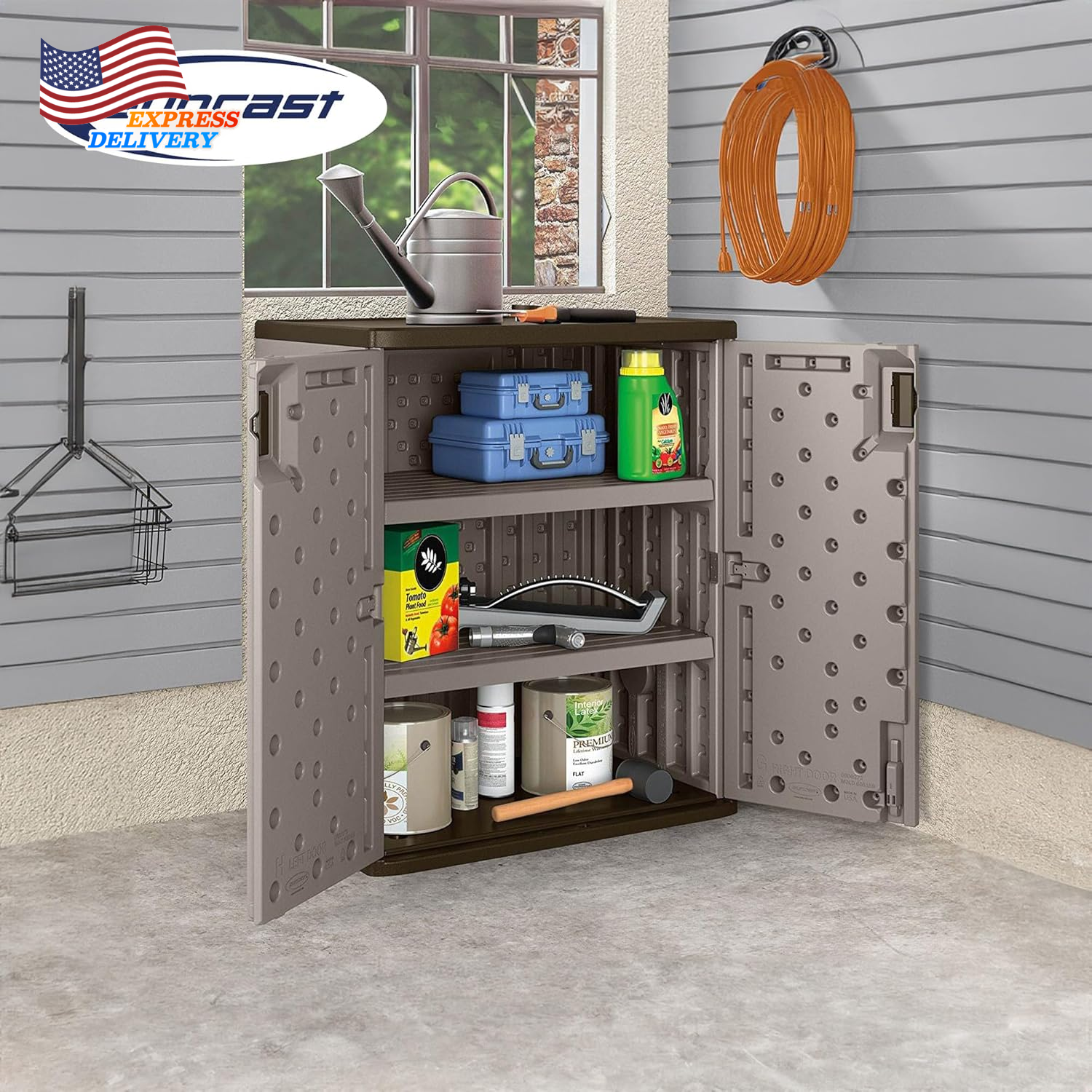 Store New Arrivals Add to Favorite View Feedback Contact Base Storage Cabinet for Garage Organization 9 Cu. Ft. Capacity Platinum Metallic Description Item model number BMC3600 Storage Volume 254.85 Liters Warranty Description 90 days. Country of Origin USA Product Dimensions 20.25"D x 30"W x 36"H Top Material Type Resin Number of Pieces 1 Room Type Utility Room Number of Compartments 3 Assembly Required Yes Dishwasher compatible No Batteries required No Care instructions Wipe with Damp Cloth UV protection Basic UV Protection Installation Type Freestanding Pattern Name Organizer Frame Material Plastic Finish Type Brown Included Components Cabinet Number of Doors 2 Shape Rectangular Door Style Slab Item Weight 39 pounds Is Customizable No Lock Type Key Number of Shelves 2 Special Feature Lightweight Weight Limit 75 Pounds Number of Levels 2 Mounting Type Floor Mount Color Silver Is Discontinued By Manufacturer No Global Trade Identification Number 00044365021881 Handle Material Resin Material Resin, Metal Style Adjustable,Lockable Base Type Legs Back Material Type Resin Recommended Uses For Product Tools Finish types Brown Fabric Type Resin Resin Organize your garage or workshop with the Suncast Base Storage Cabinet. Designed to keep your space tidy and your tool collection accessible, this cabinet is a perfect blend of style and functionality. The multi-wall resin panels are engineered for added strength to withstand the demands of any busy environment. The generous capacity of 9 cubic feet provides ample space for a wide range of items, from gardening supplies to cleaning essentials like a handheld broom, spray mop, or even a compact holder for smaller gears. The two reinforced shelves inside can each support up to 75 lbs. of heavier items without sagging. Whether you're organizing your basement or upgrading from mounted units, this freestanding organizer has you covered. The weather-resistant resin construction resists dents, rust, and rotting, providing an easy-to-clean, low-maintenance solution. Its Platinum Metallic body is complemented by a Slate-colored ceiling roof and floor, creating a modern look that fits seamlessly into any home setting. Measuring 2 ft. 6 in. wide by 1 ft. 8.25 in. deep by 3 ft. high, this cabinet fits neatly into smaller spaces and easily tucks beneath overhead shelving or workbenches. Designed for convenience, there’s no need to mount it. The double door feature is pad-lockable (lock not included) with upper and lower latches to keep your items locked and secure at all times. This heavy duty cabinet offers a practical alternative to open shelving or a hanging system with wall hooks in a large shed or mudroom. It’s also a great fit for the washroom or utility room near the kitchen, where it can serve as a laundry closet or overflow pantry for storing detergent and packs of hanger for your drying rack or clothesline. The durable construction and thoughtful design of the Suncast Base Storage Cabinet provide a reliable storage solution that fits seamlessly into various spaces, helping you maintain an orderly and efficient environment. Organize your garage or workshop with the Suncast Base Storage Cabinet. Designed to keep your space tidy and your tool collection accessible, this cabinet is a modern blend of style and functionality. The multi-wall resin panels are engineered for added strength to withstand the demands of any busy environment. The generous capacity of 9 cubic feet provides ample space for a wide range of items, from gardening supplies to cleaning essentials like a handheld broom, spray mop, or even a compact holder for smaller gears. The two reinforced shelves inside can each support up to 75 lbs. of heavier items without sagging. Whether you're organizing your basement or upgrading from mounted units, this freestanding organizer has you covered. The weather-resistant resin construction resists dents, rust, and rotting, providing an easy-to-clean, low-maintenance solution. Its Platinum Metallic body is complemented by a Slate-colored ceiling roof and floor, creating a modern look that fits seamlessly into any home setting. Measuring 2 ft. 6 in. wide by 1 ft. 8.25 in. deep by 3 ft. high, this cabinet fits neatly into smaller spaces and easily tucks beneath overhead shelving or workbenches. Designed for convenience, there’s no need to mount it. The double door feature is pad-lockable (lock not included) with upper and lower latches to keep your items locked safely out of sight. This heavy duty cabinet offers a practical alternative to open shelving or a hanging system with wall hooks in a large shed or mudroom. You can also position it in the washroom or utility room near the kitchen, where it can serve as a laundry closet or overflow pantry for storing detergent and packs of hanger for your drying rack or clothesline. The durable construction and thoughtful design of the Suncast Base Storage Cabinet provide a reliable storage solution that fits seamlessly into various spaces, helping you maintain an orderly and efficient environment. ABOUT US We offer the best prices around on high quality products. Our E-store includes media such as books, movies, music and games while offering electronics, toys, sporting apparel, clothing, tools, general home, garden items and more. SHIPPING We are always working hard to ensure your package arrives as soon as possible. Please understand that some factors like weather, high postal traffic, and the performance of shipping companies are outside of our control. We offer free shipping to the lower 48 states and ship within 2 business days of payment, usually sooner. We do not accept P.O. Boxes. Please provide a physical address. For shipping outside of the continental USA, we only use eBay's Global Shipping Program.The item is shipped to KY and then sent to the rest of the world. International customers are responsible for all duties and taxes. Continue to check out in order to calculate costs for shipping the 