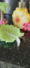 ADORABLE SET! YOUR GUESTS WILL LOVE THESE! THERE IS SOME SLIGHT EROSION AROUND PUMP BASE, AND SOME MISSING PAINT ON SOAP HOLDER BUT IT IS SLIGHT ON ONE SIDE SO I DOUBT ANYONE WILL NOTICE. I MAINLY USED IT FOR SHOW DECOR.