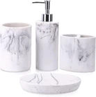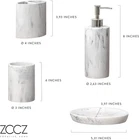 Bathroom Accessories Set 4 Piece: With 1 x soap dispenser, 1 x tooth brush holder, 1 x bathroom tumbler cup and 1 x soap dish; allow you to organize a lot of your bathroom stuff with easy and keep your bathroom clean, tidy and orderly Well Designed Bathroom Set: Classy Marble look, all of the items compliment each other. Our bathroom decor set matches your bathroom in a perfect manner Premium Material: The bathroom vanity countertop accessories set is made of nice resin material, not the brittle type of plastic or ceramics. It has that heaviness and not heavy weight marble. Pretty sturdy, the bathroom sink set won't break easily Great Gift Idea: The bathroom set accessories were well-packed to ensure that they arrived safely without damage. Perfect gift for your families, friends, lover, colleagues, housewarming or a wedding 100% Satisfaction Guarantee: Include 1 x Bathroom Accessories Set (4 piece set), 45-day money back guarantee, worry-free 18-month warranty, and friendly customer service. zccz modern bathroom accessories set, 4-piece marble pattern bath vanity accessories set with soap dispenser, toothbrush holder, tumbler and soap dish Features Nice design, classy marble look, the bathroom decorations accessories bring bright and elegant tough to your whole bathroom. Well crafted, the bathroom essential tie the colors and design together perfectly, go well with bath decor. Quality resin material, heavy and nice, the marble bathroom set doesn't break easily . A good idea to give the bathroom sets complete to your families, friends or colleagues as a gift. After Sales Your satisfaction is our goal of service. Any Problems, please do not hesitate to contact us. STEP: Your account > Your order > Purchased Items > Seller: ZCCZ > Ask a question.