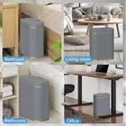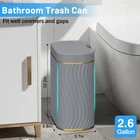 【SMART SENSOR TECHNOLOGY】 Our bathroom trash can is equipped with advanced sensing technology, reducing unnecessary openings and extending battery life. Simply place your hand above the infrared motion sensor, and the lid will stay open for your convenience. After 5 seconds of inactivity, the lid automatically closes to conserve energy. (Product powered by 2 AA batteries, not included) 【PERFECT SIZE】Measuring 12.2''L×9.8''W×5.7''H and holding 2.6 gallons, our bathroom garbage can is crafted from durable ABS materials, ensuring long-lasting use. 【WATER-RESISTANT DESIGN】 Thanks to our IPX5 waterproof technology, you don't need to worry about water or humidity damaging the unit. After a quick rinse, the surface remains free of water stains. 【STYLISH & FUNCTIONAL】 Our trash can features a sleek, unique design with novel wave stripes that not only add visual aesthetics but also provide anti-slip functionality. Its modern oval shape makes it a perfect fit for bathrooms, kitchens, and other rooms, optimizing space usage. 【TRASH BAG FIX RING】 The removable trash bag fixed liner ensures that trash bags can hold heavier waste securely. Just place the liner inside and attach a trash bag to keep it discreetly hidden.