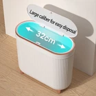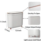 Trash Bin Dimension: The trash Bin is 12.6x11.3x5.5 inch/32 x 28.7 x 14 cm to ensure large storage capacity, it holds 3.1 Gallon/12 Liter daily home garbage easily, large capacity is enough to meet the daily needs of the entire family. A wide 12.6inch/32cm diameter lid opening makes throwing even bulky garbage easy, quick, and mess-free. Trash Can with Lid: The press-top cover design can keep your home clean and tidy. Just press the key, and the lid will automatically pop up, easy to operate. Elegant and Stylish: Specially designed in a modern and minimalist style, Simple and elegant, beautiful appearance, the garbage can is decorative for your home. The attractive profile and unique design make this plastic trash can with lid presentable and sanitary. Space Saving: The slim trash can with a width of 14 cm is very suitable for small areas such as narrow hallways, tight corners and between furniture, etc, which can help you to save room space. This waste basket is not only good for keeping your home clean and free of clutter, but also an exquisite decor for your house. Wide Application: The trash can with a lid is made up of high-quality plastic, sturdy and durable, and easy to clean. Whether it is a kitchen trash can, bathroom wastebasket, bedroom garbage can, office trash can, or even the diaper trash bin you need.