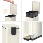 【Hands-Free Trash Can】This step on trash can equipped with strong pedal and advanced step-on mechanism, you can easily open the lid by stepping on the pedal, totally hands free. 【Trash Can with Liner】The 10 liter trash can come with a inner bin for waste recycling, suitable for home and kitchen. 【Slim Designed for Small Gap】This rectangular trash can is slim design, only 6.5 inch wide, great for small gap of home and kitchen, save your space. 【Quiet Close Trash Can】This silent close trash can built-in slow and soft close mechanisms, it will slow and silent to close when your foot leave the pedal. 【Stainless Steel Trash Can】Made of SUS304 stainless steel, this stainless steel trash can is easily to maintain and sturdy. 【Compact Small Trash Can】2.6 Gallon capacity design, the inner bin size: 5.9*9.7*10.8inch.