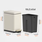 【Hands-Free Trash Can】This step on trash can equipped with strong pedal and advanced step-on mechanism, you can easily open the lid by stepping on the pedal, totally hands free. 【Trash Can with Liner】The 10 liter trash can come with a inner bin for waste recycling, suitable for home and kitchen. 【Slim Designed for Small Gap】This rectangular trash can is slim design, only 6.5 inch wide, great for small gap of home and kitchen, save your space. 【Quiet Close Trash Can】This silent close trash can built-in slow and soft close mechanisms, it will slow and silent to close when your foot leave the pedal. 【Stainless Steel Trash Can】Made of SUS304 stainless steel, this stainless steel trash can is easily to maintain and sturdy. 【Compact Small Trash Can】2.6 Gallon capacity design, the inner bin size: 5.9*9.7*10.8inch.