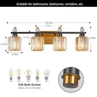 Return Policy Fast Delivery Trusted seller Bathroom Vanity Lights 4-Light Black Gold Modern Crystal Vanity Light Fixtures Over Mirror Crystal Bathroom Vanity Lighting Fixtures Product Description 【Versatile Vanity Lighting 】This bathroom light fixture allows for use with a variety of E26 standard bulbs, including LED, halogen, incandescent, and energy-saving types (dimmable with compatible bulbs and dimmer switch). Note: Bulbs are not included 【Light Size】With a base of 7.87 inches long and a shade diameter of 4.72 inches, this bathroom light boasts a space-saving design, while still providing ample lighting. It protrudes 6.88 inches from the wall and stands at a height 8.26 inches, making it a perfect fit for any size bathroom 【Expertly Crafted】Enhance your bathroom's ambiance with our expertly crafted bathroom vanity light featuring a clear K9 crystal shade, moisture and corrosion resistant gold brushed brass finish base and black arm. The simple yet luxurious design exudes a tasteful aesthetic and creates a beautiful lighting effect. 【Effortless Setup】This vanity light is designed to fit US standard junction boxes and comes with all necessary parts, plus spare crystal strips. Installation is a breeze, but for your safety, we recommend consulting with an electrician before installing 【After-Sales Service】 Our dresser lamps are of high quality and we are committed to providing our customers with excellent after-sales service. If you have any questions or concerns about the wall lamps, please feel free to contact us via email, your satisfaction is our top priority Shipping Returns Payment Shipping Shipping is FREE to all addresses other than APO/PO boxes in the lower 48 states. All our stock ships from US-based warehouses. Shipped via USPS or UPS (depending on location and package weight) Unless stated otherwise, all orders will ship within 24-72 hours of your payment being processed. Check our feedback to see the great reviews of FAST shipping we offer. Returns Seller does not accept returns Payment We currently accept payment via eBay managed payments only. Once payment is cleared, we will dispatch your shipment within 1-3 business days. Please refer to the "Shipping" tab for more information regarding shipping speed to your destination.